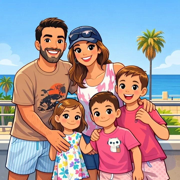 Familia formada por 5 miembros: 2 adultos y 3 niños de 9 años, 5 años y 3 años.